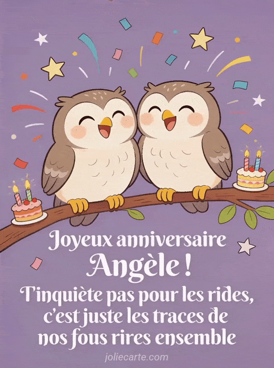 Télécharger le GIF animé joyeux anniversaire Angèle ! T'inquiète pas pour les rides, c'est juste les traces de nos fous rires ensemble
