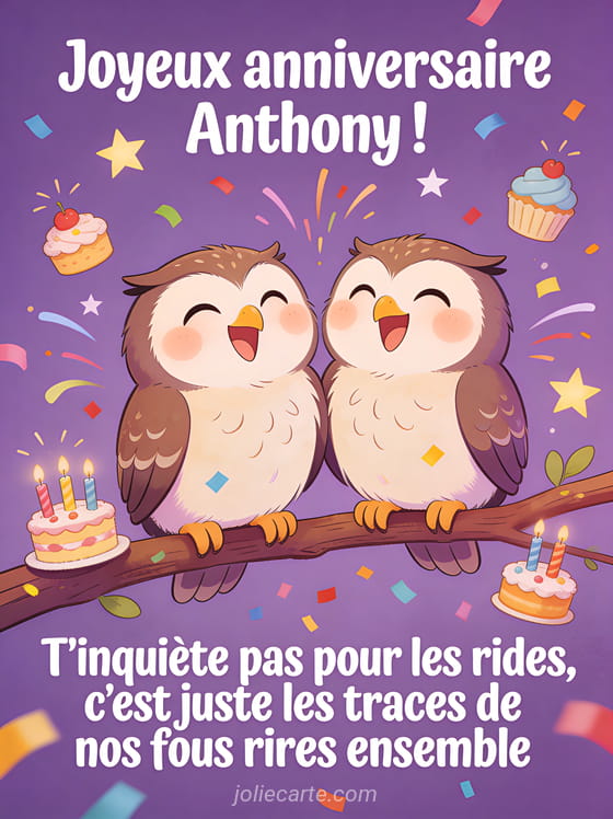 Télécharger l'image joyeux anniversaire Anthony ! T'inquiète pas pour les rides, c'est juste les traces de nos fous rires ensemble