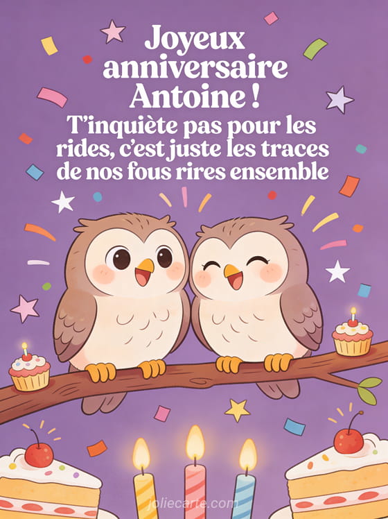 Télécharger l'image joyeux anniversaire Antoine ! T'inquiète pas pour les rides, c'est juste les traces de nos fous rires ensemble