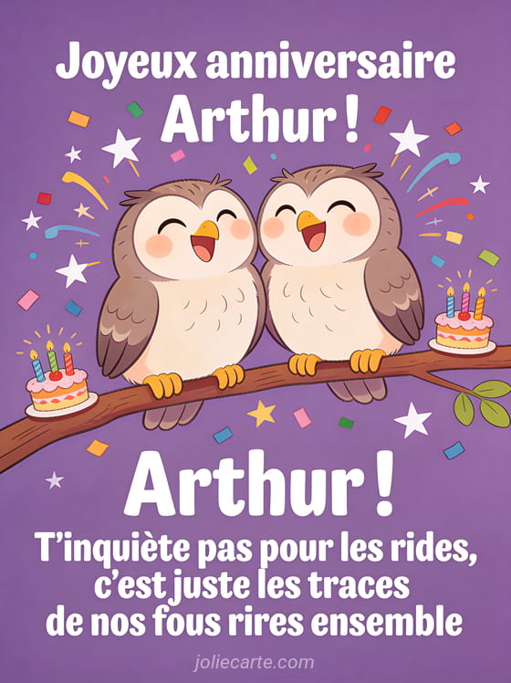 Télécharger l'image joyeux anniversaire Arthur ! T'inquiète pas pour les rides, c'est juste les traces de nos fous rires ensemble