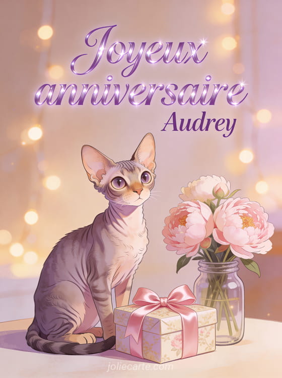 Bon anniversaire Audrey gros bisous · Bon anniversaire Audrey gif anime · Bon anniversaire Audrey jolie carte · Bon anniversaire Audrey chat · Bon anniversaire Audrey mon amour