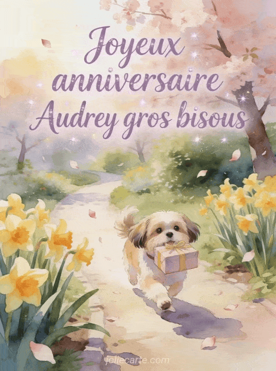 Bon anniversaire Audrey chien · Bon anniversaire Audrey gif anime · Bon anniversaire Audrey jolie carte · Bon anniversaire Audrey chat · Bon anniversaire Audrey mon amour