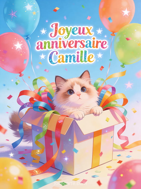 Bon anniversaire Camille image · Bon anniversaire Camille carte · Bon anniversaire Camille carte gratuite · Bon anniversaire Camille chat · Bon anniversaire Camille gif anime