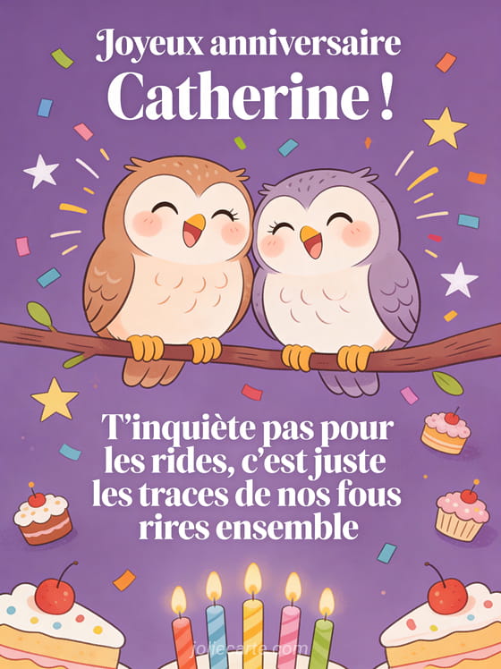 Télécharger l'image joyeux anniversaire Catherine ! T'inquiète pas pour les rides, c'est juste les traces de nos fous rires ensemble