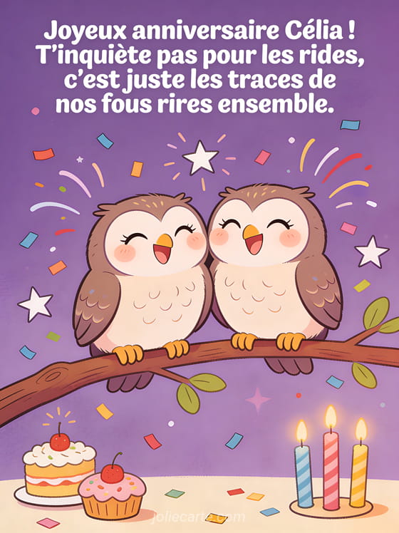 Télécharger l'image joyeux anniversaire Célia ! T'inquiète pas pour les rides, c'est juste les traces de nos fous rires ensemble