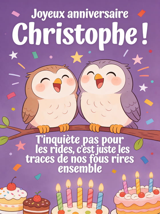 Télécharger le GIF animé joyeux anniversaire Christophe ! T'inquiète pas pour les rides, c'est juste les traces de nos fous rires ensemble
