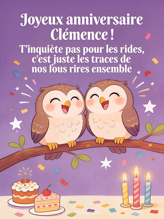 Télécharger l'image joyeux anniversaire Clémence ! T'inquiÚte pas pour les rides, c'est juste les traces de nos fous rires ensemble
