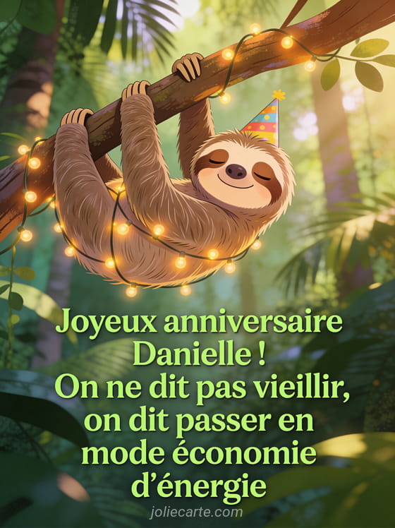 Télécharger le GIF animé joyeux anniversaire Danielle ! On ne dit pas vieillir, on dit passer en mode économie d'énergie
