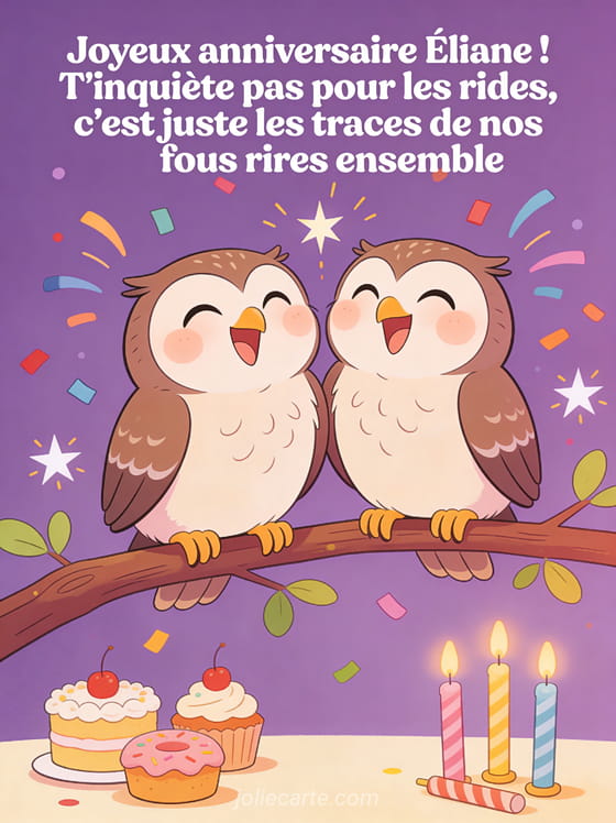 Télécharger l'image joyeux anniversaire Éliane ! T'inquiète pas pour les rides, c'est juste les traces de nos fous rires ensemble