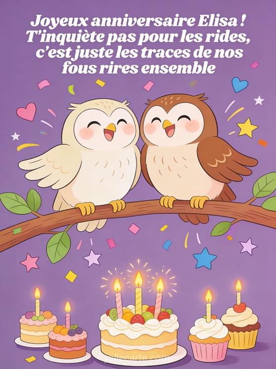 Télécharger l'image joyeux anniversaire Elisa ! T'inquiète pas pour les rides, c'est juste les traces de nos fous rires ensemble