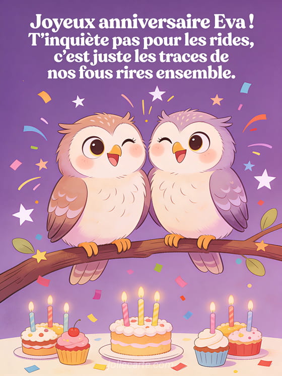 Télécharger l'image joyeux anniversaire Eva ! T'inquiète pas pour les rides, c'est juste les traces de nos fous rires ensemble