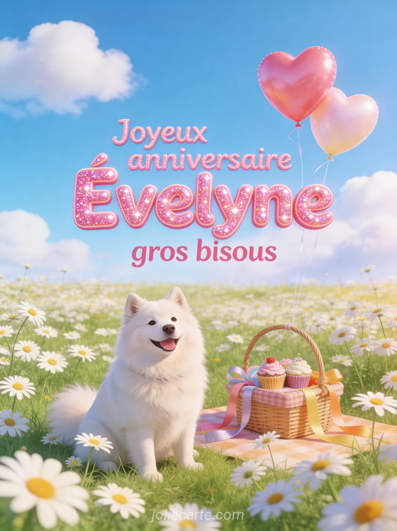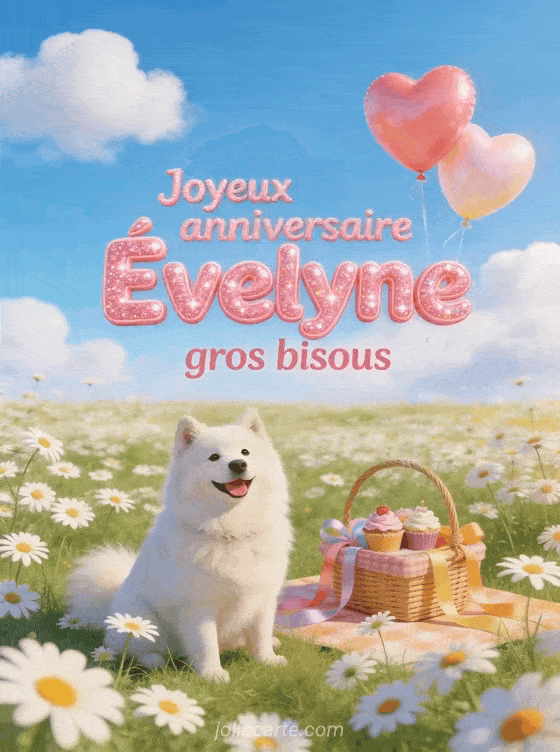 Bon anniversaire Évelyne chat · Bon anniversaire Évelyne ma fille · Bon anniversaire Évelyne chien · Bon anniversaire Évelyne mon amour · Bon anniversaire Évelyne bisous