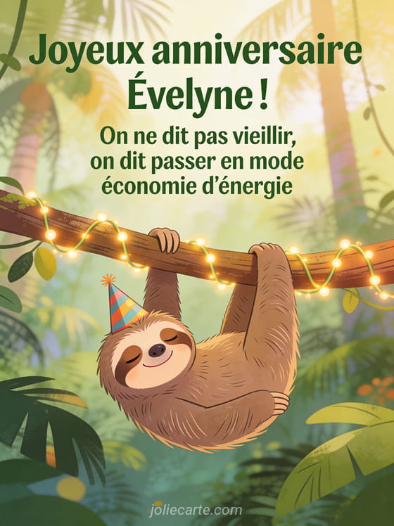 Télécharger l'image joyeux anniversaire Évelyne ! On ne dit pas vieillir, on dit passer en mode économie d'énergie