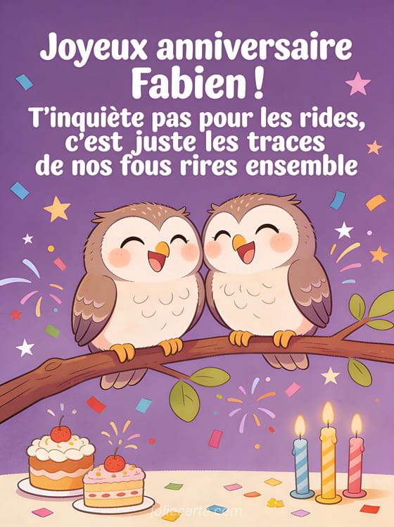 Télécharger le GIF animé joyeux anniversaire Fabien ! T'inquiète pas pour les rides, c'est juste les traces de nos fous rires ensemble
