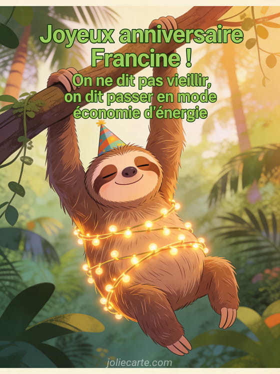Télécharger le GIF animé joyeux anniversaire Francine ! On ne dit pas vieillir, on dit passer en mode économie d'énergie