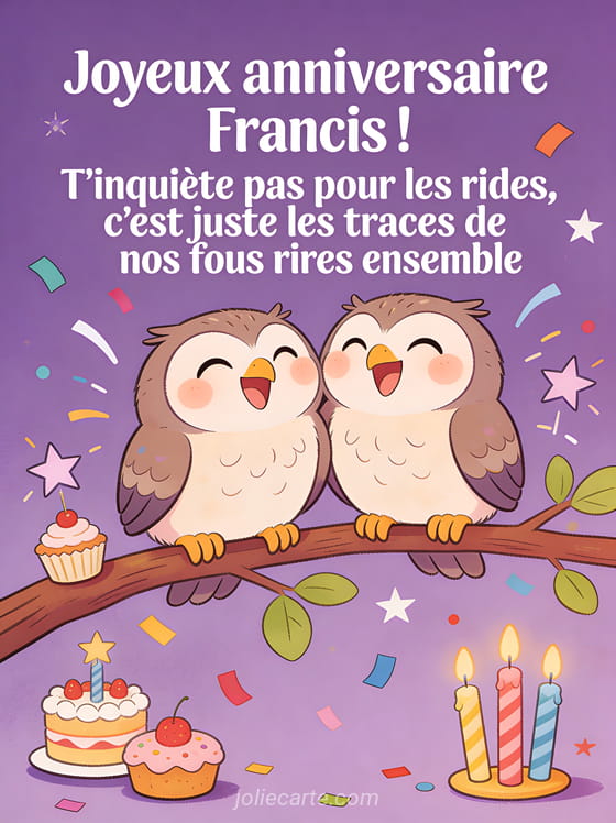 Télécharger l'image joyeux anniversaire Francis ! T'inquiète pas pour les rides, c'est juste les traces de nos fous rires ensemble