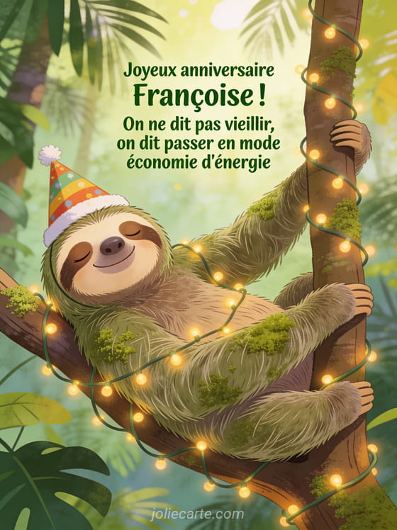 Télécharger l'image joyeux anniversaire Françoise ! On ne dit pas vieillir, on dit passer en mode économie d'énergie