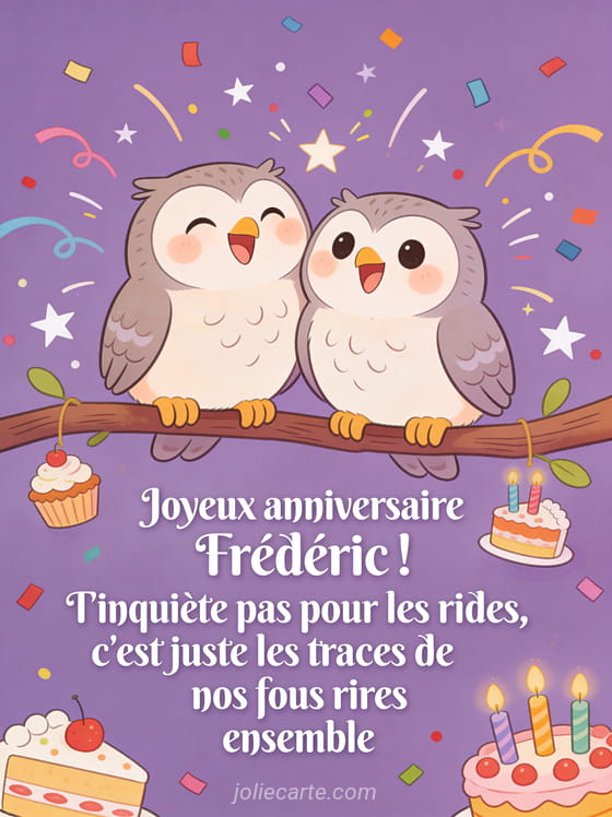 Télécharger l'image joyeux anniversaire Frédéric ! T'inquiète pas pour les rides, c'est juste les traces de nos fous rires ensemble