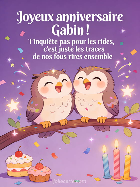 Télécharger le GIF animé joyeux anniversaire Gabin ! T'inquiète pas pour les rides, c'est juste les traces de nos fous rires ensemble