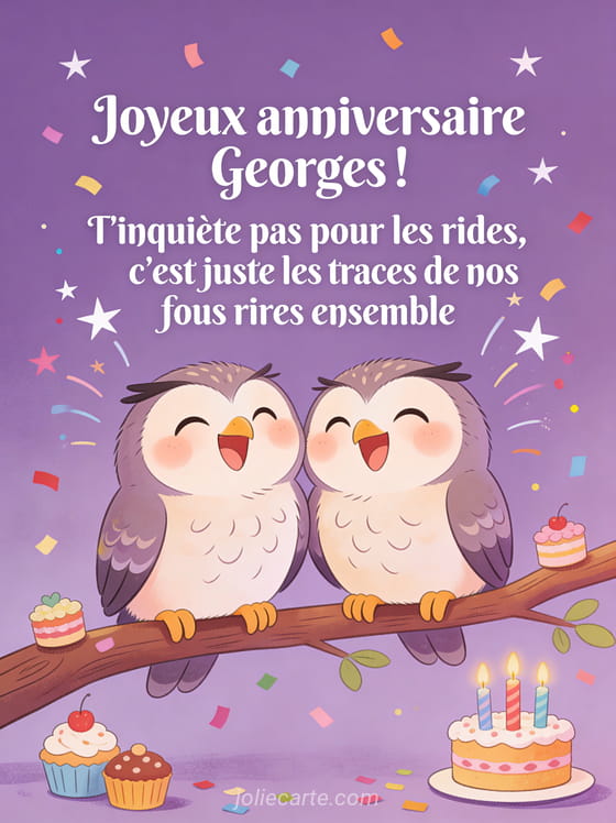 Télécharger le GIF animé joyeux anniversaire Georges ! T'inquiète pas pour les rides, c'est juste les traces de nos fous rires ensemble