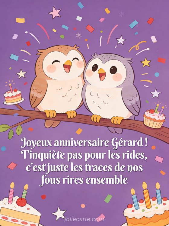 Télécharger le GIF animé joyeux anniversaire Gérard ! T'inquiÚte pas pour les rides, c'est juste les traces de nos fous rires ensemble