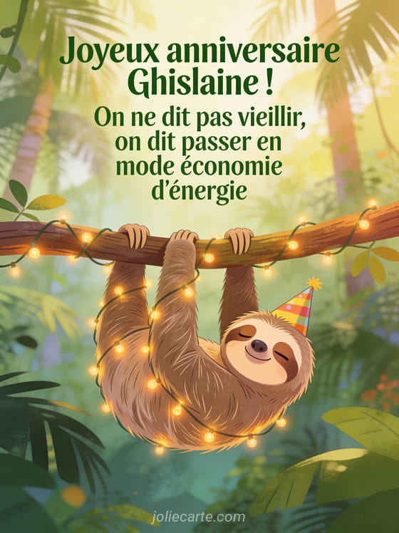 Télécharger l'image joyeux anniversaire Ghislaine ! On ne dit pas vieillir, on dit passer en mode économie d'énergie