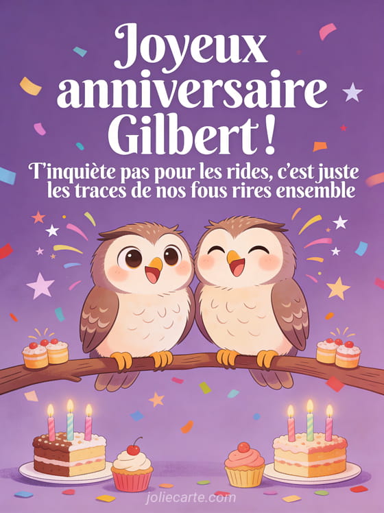 Télécharger l'image joyeux anniversaire Gilbert ! T'inquiète pas pour les rides, c'est juste les traces de nos fous rires ensemble