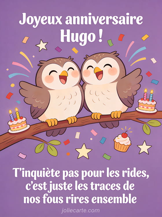 Télécharger l'image joyeux anniversaire Hugo ! T'inquiète pas pour les rides, c'est juste les traces de nos fous rires ensemble