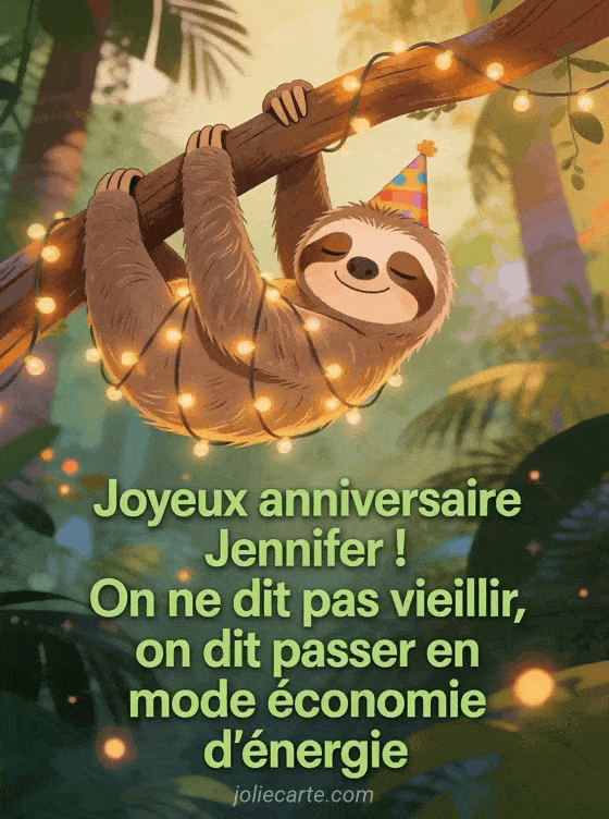 Télécharger le GIF animé joyeux anniversaire Jennifer ! On ne dit pas vieillir, on dit passer en mode économie d'énergie