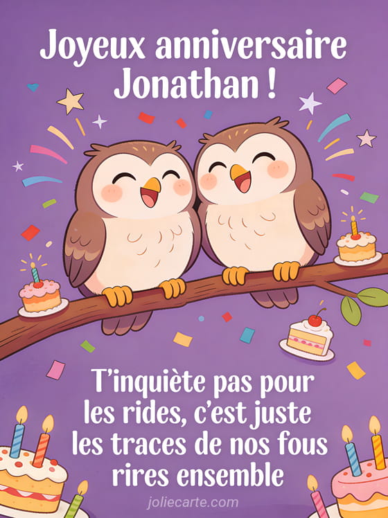 Télécharger l'image joyeux anniversaire Jonathan ! T'inquiète pas pour les rides, c'est juste les traces de nos fous rires ensemble
