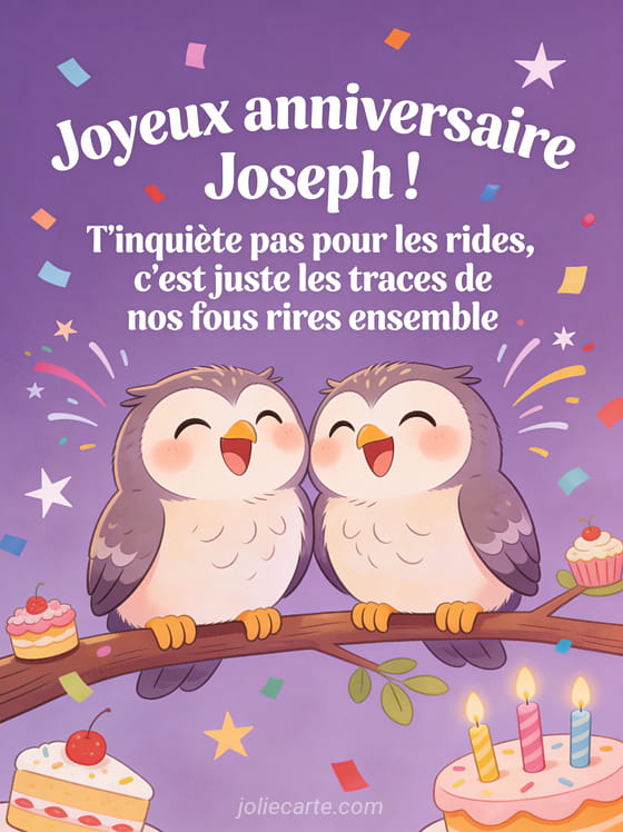 Télécharger l'image joyeux anniversaire Joseph ! T'inquiète pas pour les rides, c'est juste les traces de nos fous rires ensemble