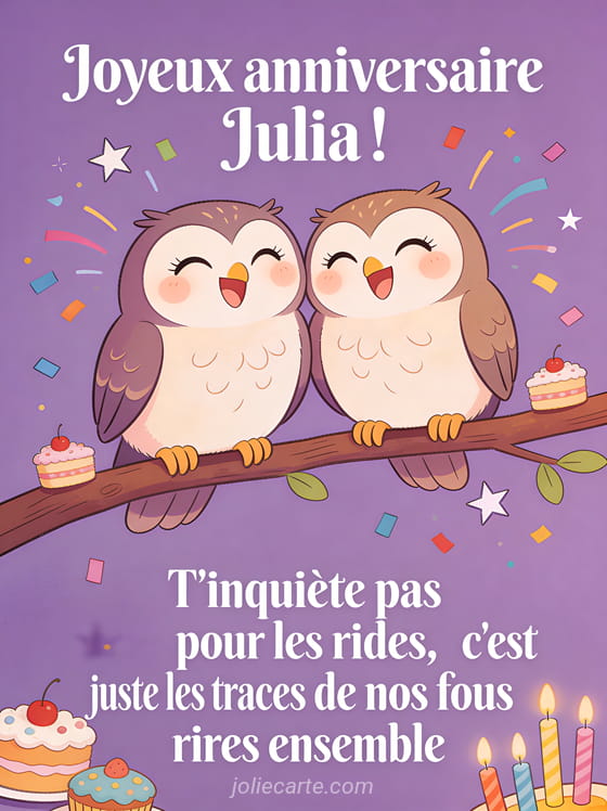 Télécharger l'image joyeux anniversaire Julia ! T'inquiète pas pour les rides, c'est juste les traces de nos fous rires ensemble
