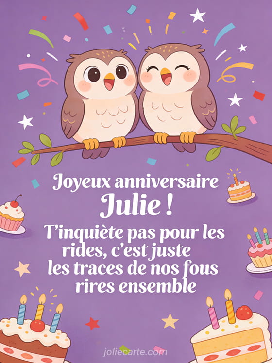 Télécharger l'image joyeux anniversaire Julie ! T'inquiète pas pour les rides, c'est juste les traces de nos fous rires ensemble