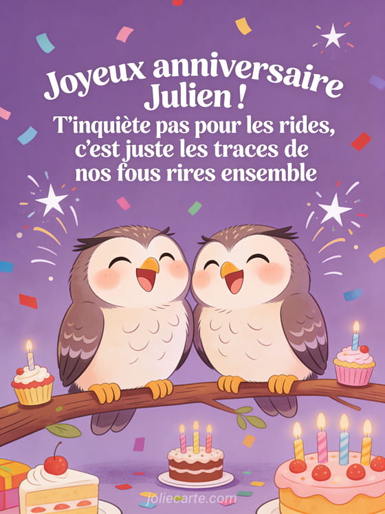 Télécharger l'image joyeux anniversaire Julien ! T'inquiète pas pour les rides, c'est juste les traces de nos fous rires ensemble
