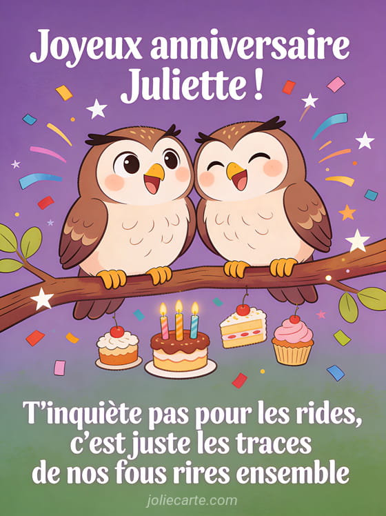 Télécharger l'image joyeux anniversaire Juliette ! T'inquiète pas pour les rides, c'est juste les traces de nos fous rires ensemble