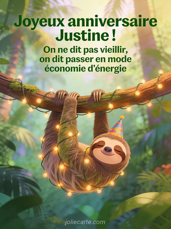 Télécharger l'image joyeux anniversaire Justine ! On ne dit pas vieillir, on dit passer en mode économie d'énergie