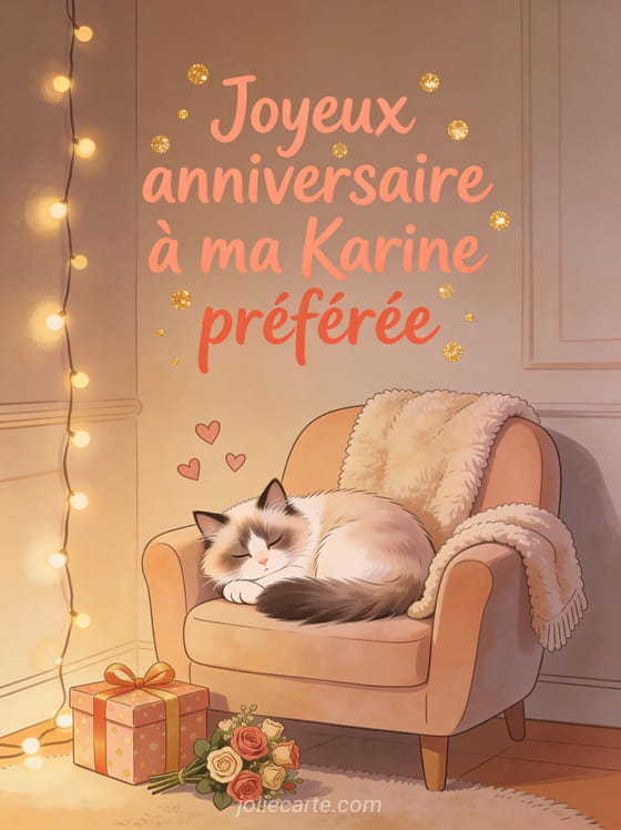 Bon anniversaire Karine fille · Bon anniversaire Karine jolie carte · Bon anniversaire Karine femme · Bon anniversaire Karine chat · Bon anniversaire Karine gros bisous