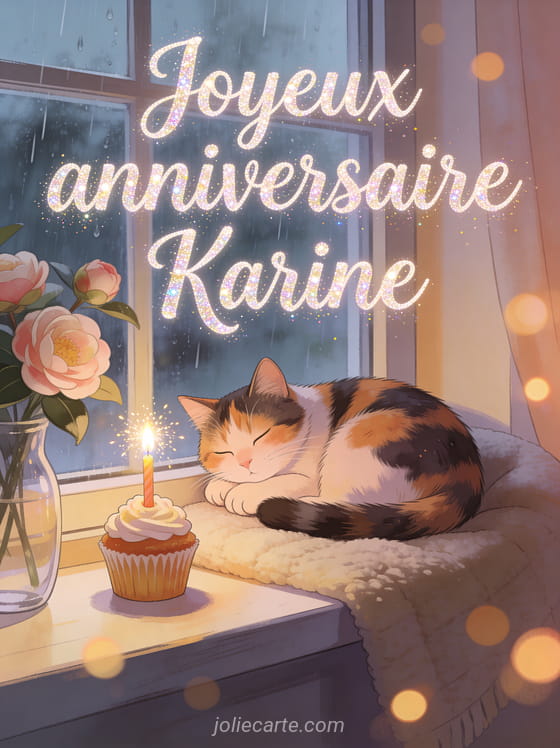 Bon anniversaire Karine chat · Bon anniversaire Karine gros bisous · Bon anniversaire Karine chien · Bon anniversaire Karine rigolo · Bon anniversaire Karine fleurs