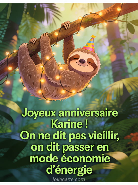 Télécharger l'image joyeux anniversaire Karine ! On ne dit pas vieillir, on dit passer en mode économie d'énergie