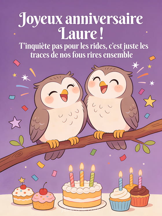 Télécharger l'image joyeux anniversaire Laure ! T'inquiète pas pour les rides, c'est juste les traces de nos fous rires ensemble