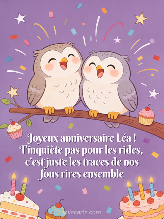Télécharger l'image joyeux anniversaire Léa ! T'inquiète pas pour les rides, c'est juste les traces de nos fous rires ensemble
