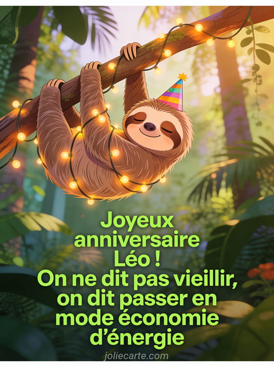 Télécharger l'image joyeux anniversaire Léo ! On ne dit pas vieillir, on dit passer en mode économie d'énergie