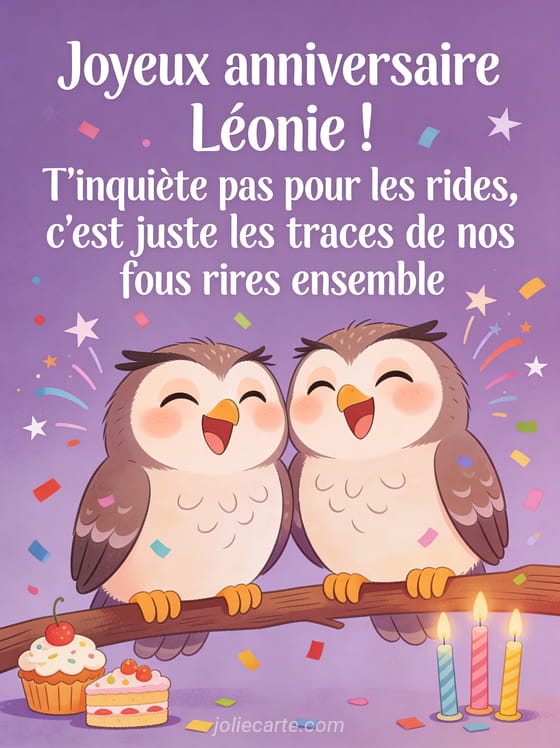 Télécharger l'image joyeux anniversaire Léonie ! T'inquiète pas pour les rides, c'est juste les traces de nos fous rires ensemble