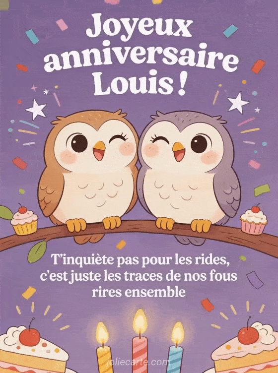 Télécharger le GIF animé joyeux anniversaire Louis ! T'inquiÚte pas pour les rides, c'est juste les traces de nos fous rires ensemble
