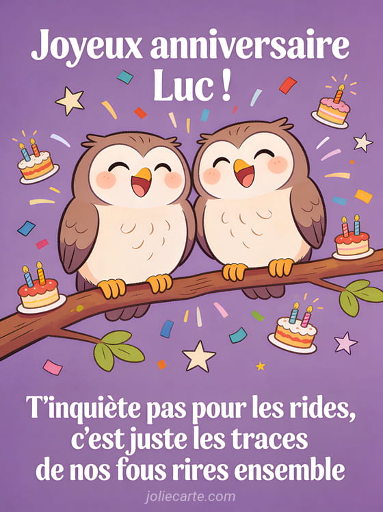 Télécharger l'image joyeux anniversaire Luc ! T'inquiète pas pour les rides, c'est juste les traces de nos fous rires ensemble