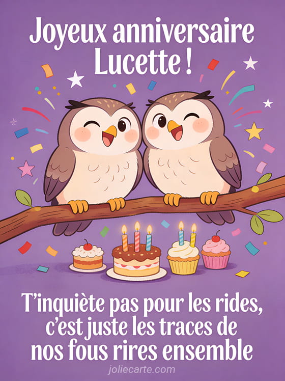 Télécharger l'image joyeux anniversaire Lucette ! T'inquiète pas pour les rides, c'est juste les traces de nos fous rires ensemble