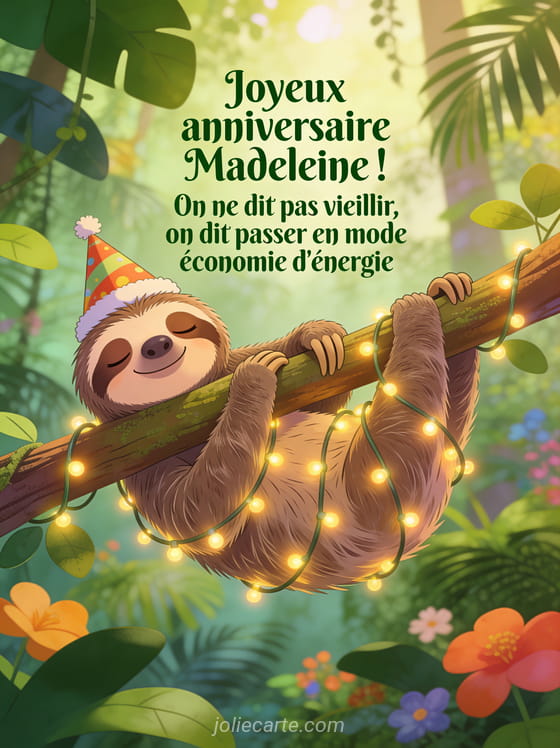 Télécharger l'image joyeux anniversaire Madeleine ! On ne dit pas vieillir, on dit passer en mode économie d'énergie