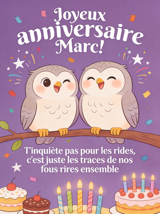 Télécharger l'image joyeux anniversaire Marc ! T'inquiète pas pour les rides, c'est juste les traces de nos fous rires ensemble