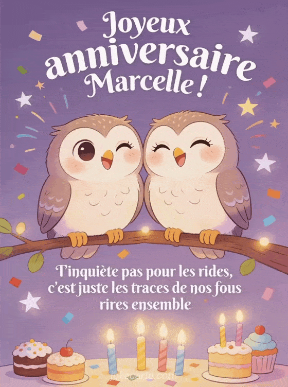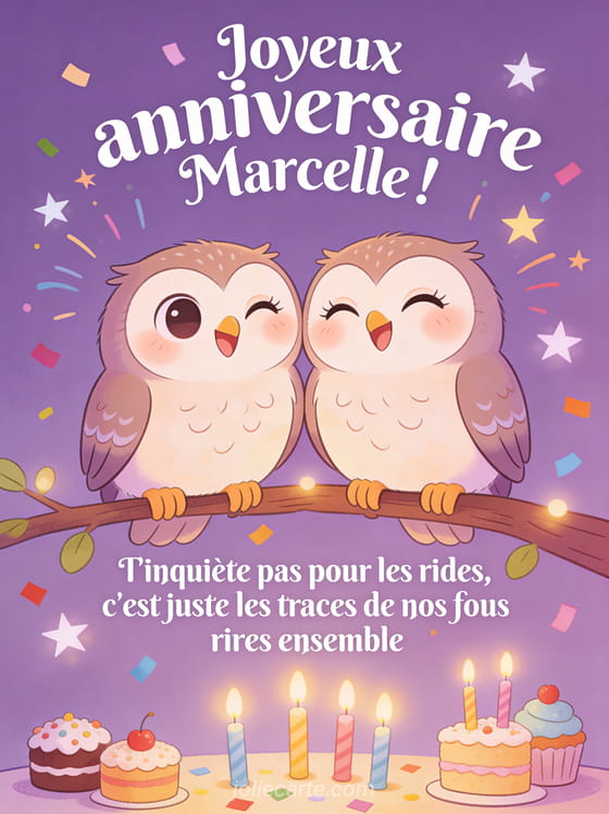 Télécharger le GIF animé joyeux anniversaire Marcelle ! T'inquiète pas pour les rides, c'est juste les traces de nos fous rires ensemble