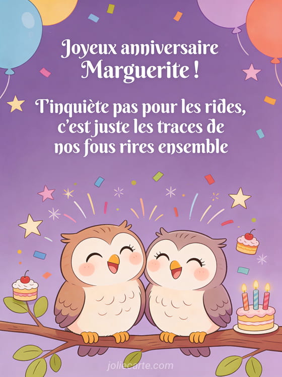 Télécharger le GIF animé joyeux anniversaire Marguerite ! T'inquiète pas pour les rides, c'est juste les traces de nos fous rires ensemble